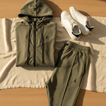 ILRAYA Rif Sage : اشعر بالترف اليومي مع ريف سيج من ILRAYA: طقم زيب أنيق بلون كاكي ساج وانسيابية متناغمة تمنحك حرية الحركة دون المساس بالأناقة.