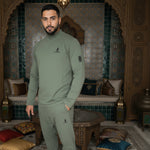 مجموعة ملابس رجالية من UrbanFlex Sage ، ذات رقبة دائرية وقصّة نظيفة وساق مدببة.
