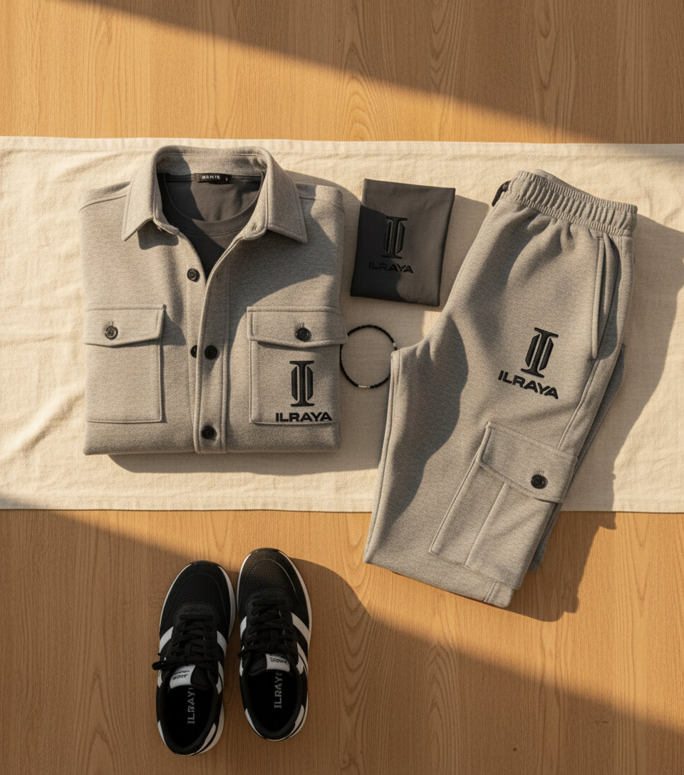 Collection Homme ILRAYA : survêtements, hoodies, joggers. Style minimal, 85% coton /...